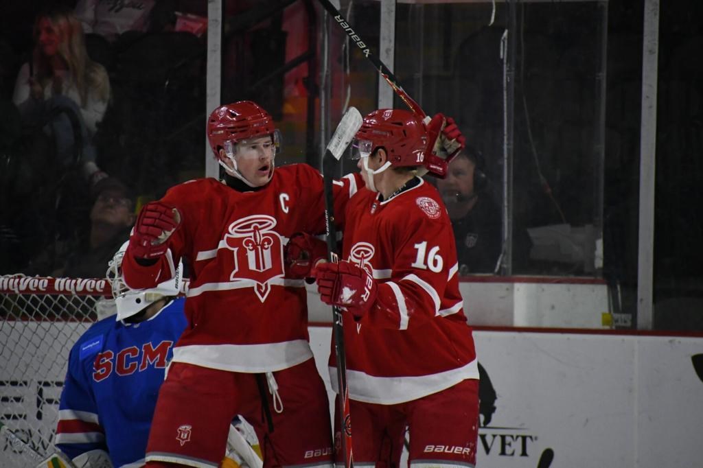 The Dubuque Fighting Saints came out flying and set the tone early, scoring twice in the opening period to take control against the Waterloo Black Hawks.
